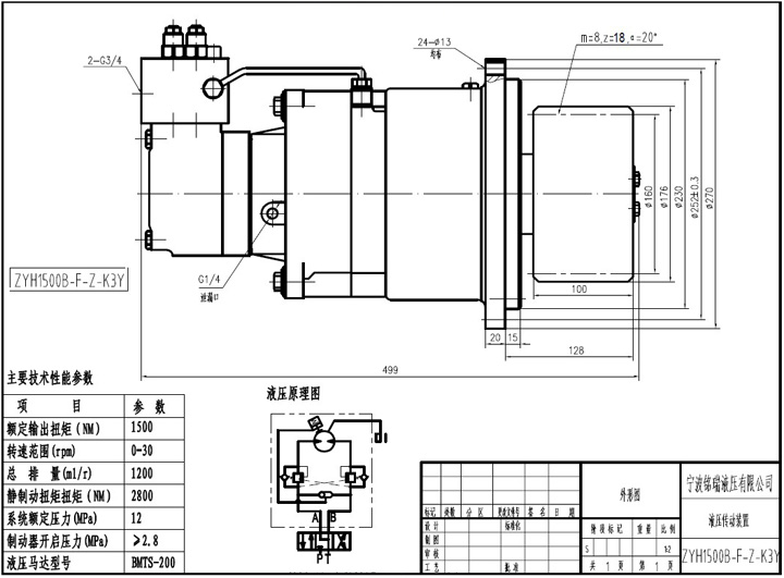 ZYH液壓回轉(zhuǎn)裝置改變了原有減速器龐大的體積和分體設(shè)計(jì)的思路,把液壓馬達(dá)、制動(dòng)器、減速器、液壓控制系統(tǒng)、和輸出齒輪設(shè)計(jì)為整整體,從而具有轉(zhuǎn)速低、扭矩大、體積小、重量輕、安裝方便等特點(diǎn)。